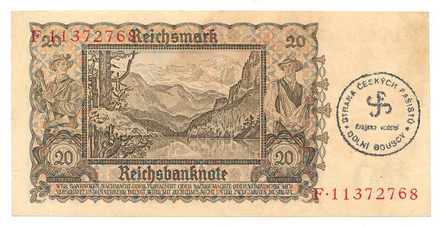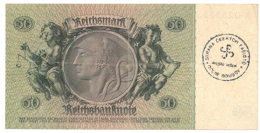 na reverzu razítko: Strana českých fašistů, Krajské vedení, Dolní Bousov |