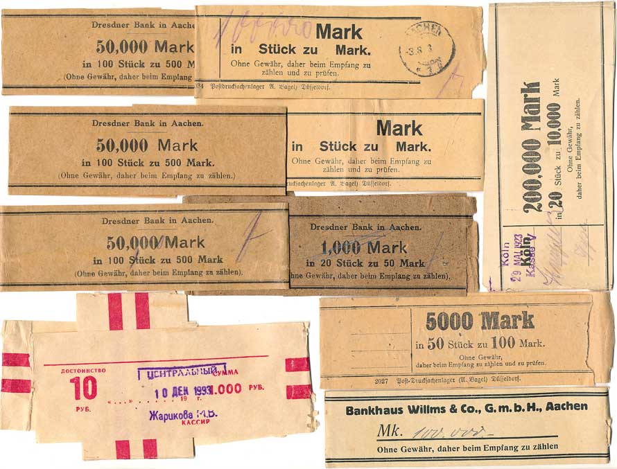 | 2121. | Bankovní pásky - inflační marky + Rusko 1993, nové i použité, 10ks | - | 50,- | --.- |
