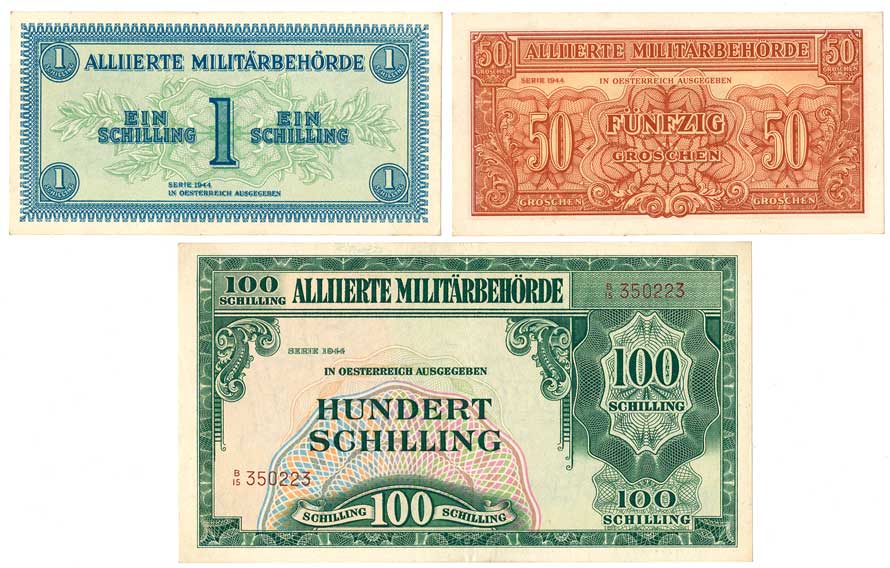 | 2127. | 50 Groschen, 1 a 100 Schilling 1944, poukázky spojeneckých vojsk, 3ks | N-1 | 360,- | 800,- |