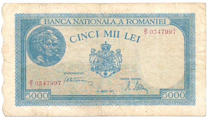 | 2128. | 5000 Lei 21.8.1945, s.Z/7 | 3 | 100,- | --.- |