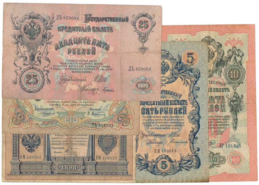 | 2133. | 1,3,5,10,25 Rublů, 1898,1905,1909,1909,1909, 6ks | - | 120,- | 120,- |