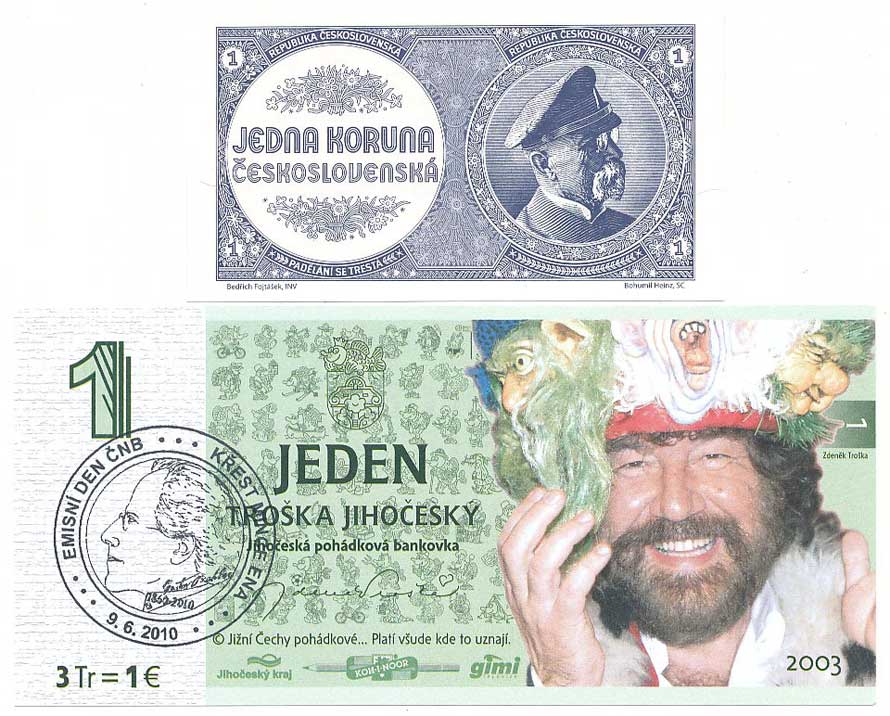 pohádková bankovka 1 Troška jihočeský 2003, 154x73, 2ks |