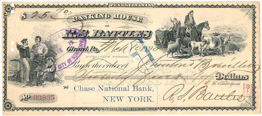 | 2158. | USA - Banking House of R.S.Battles - Chase National Bank New York,