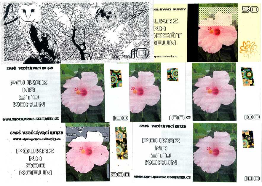 Plzeň - firma EMPS, poukázky 50, 4x100, 200 Kč, 3.2.2010, 7ks |
